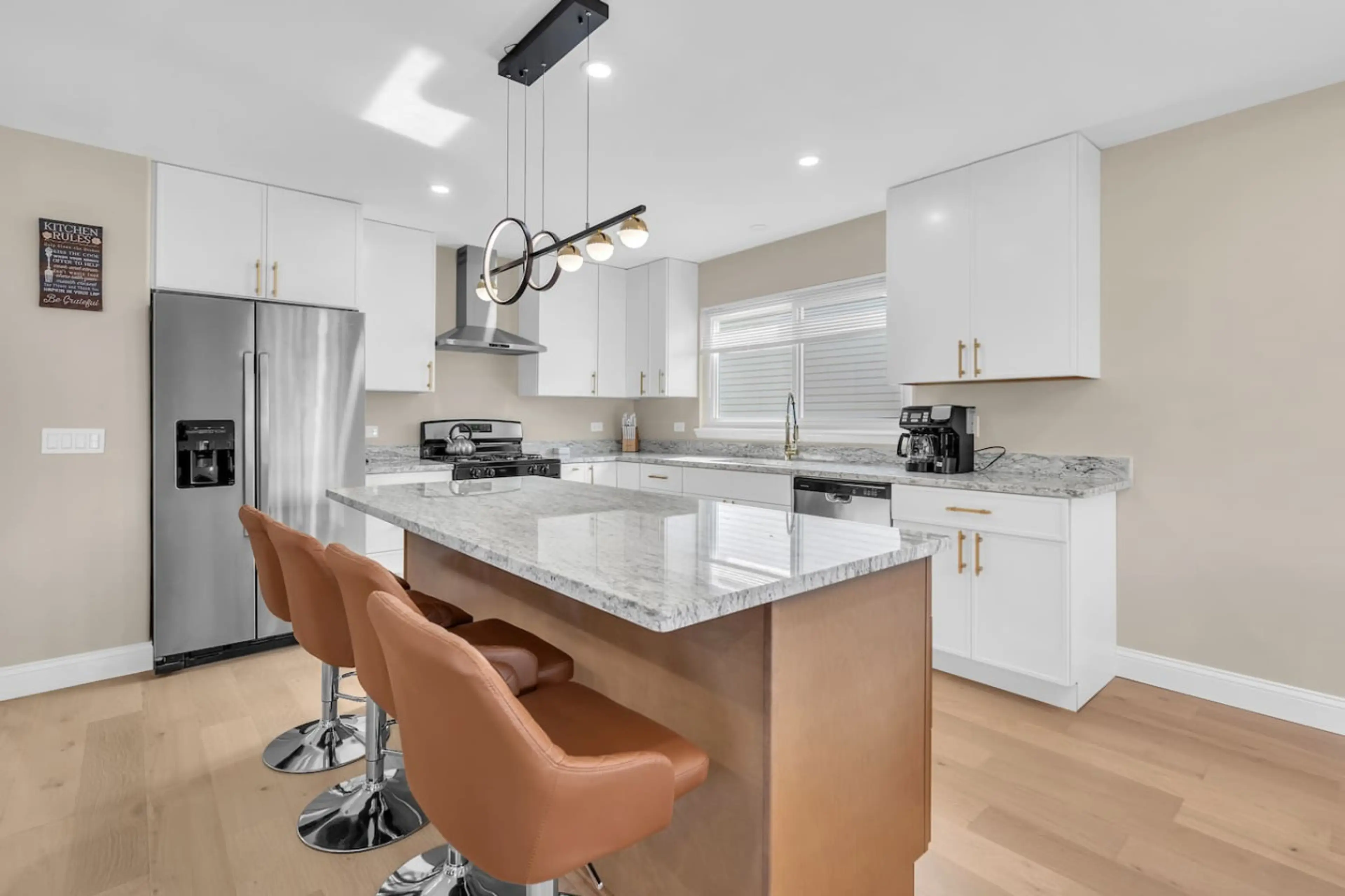 Enjoy a stylish experience at this centrally-located place. Welcome to your perfect getaway! This beautiful and spacious home is designed with comfort and entertainment in mind—perfect for families or groups. Upstairs, you’ll find a stunning open-concept kitchen fully equipped with everything you ...
